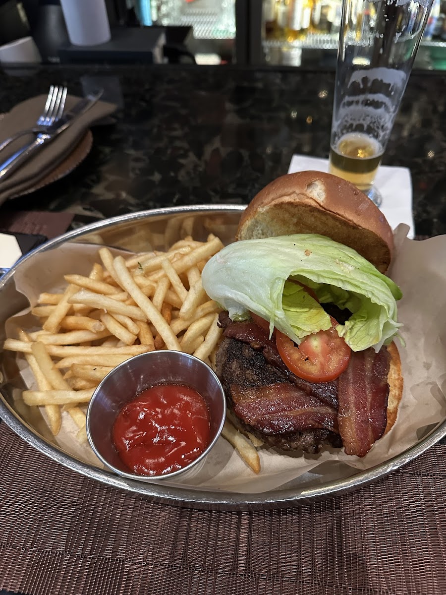 In addition to steaks, the menu features a selection of delightful options, such as the Whole Branzino served with a zesty garlic soy sauce for $44, or the Sakura Pork Chop, a savory double-bone chop glazed in hoisin and ginger for $48. For those looking to indulge in a lighter fare, the LB Burger is a must-try, accentuated with smoked onion marmalade and sautéed mushrooms for just $24.