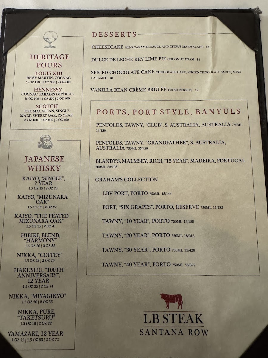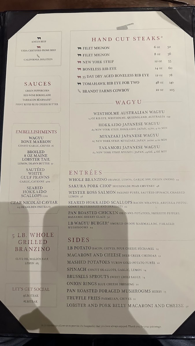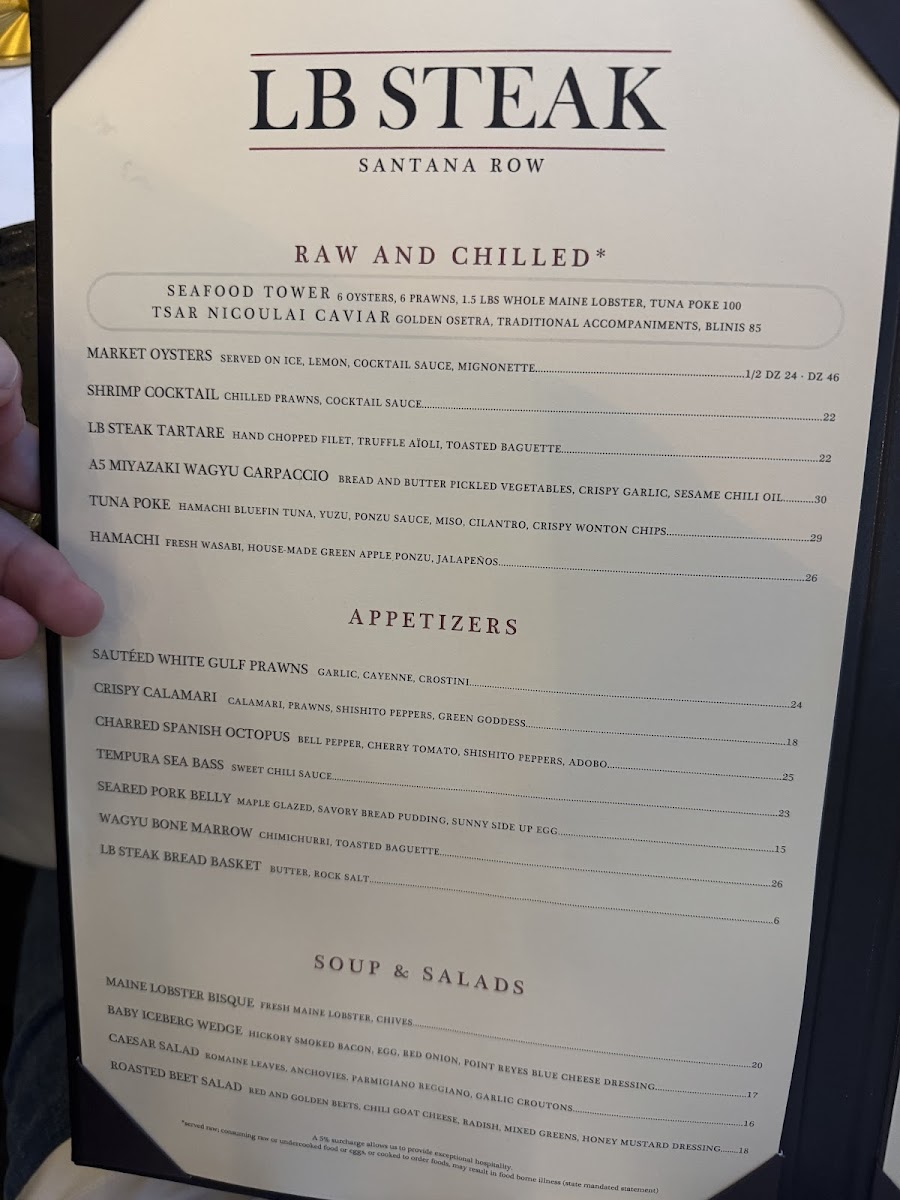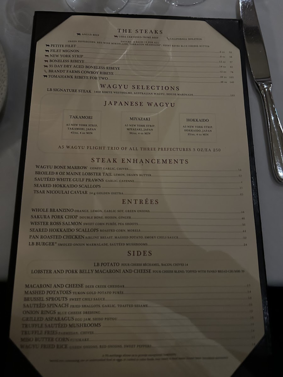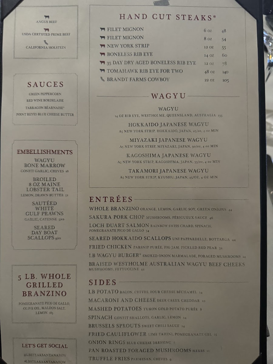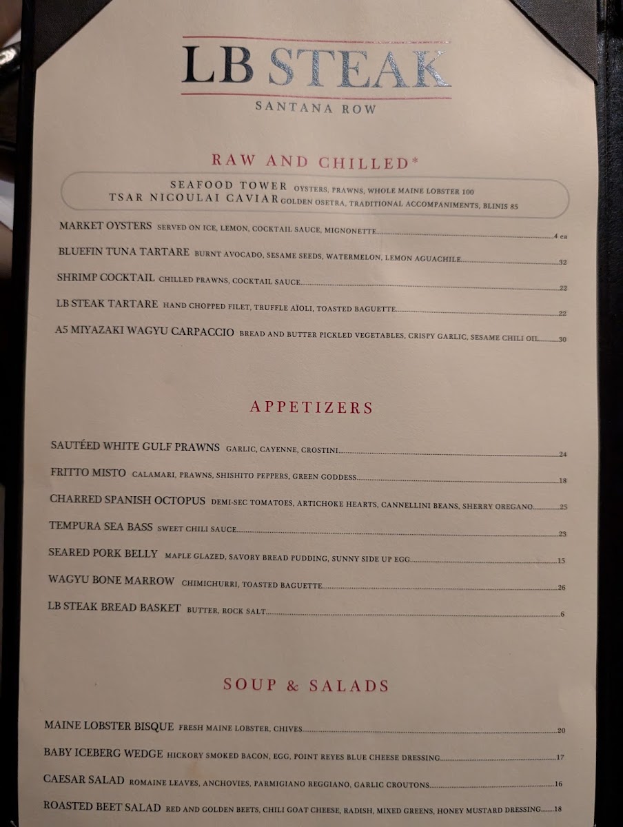 L.B. Steak - Santana Row Menu
